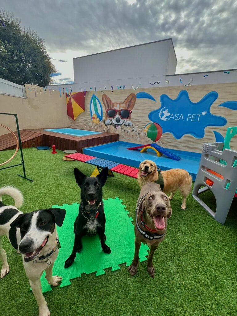 Na creche, os pets se divertem com atividades monitoradas e socializam com outros animais em áreas amplas e seguras.